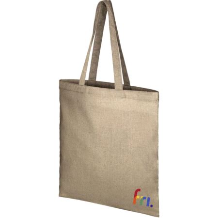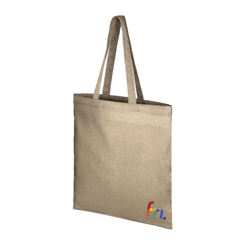 Handlenett produsert av 150/gm² resirkulert bomulls-og polyesterblanding med en håndtakslengde på 31 cm. Resirkulert bomull som produseres av produksjonsrester generert av tekstilfabrikker under tilskjæringsprosessen.